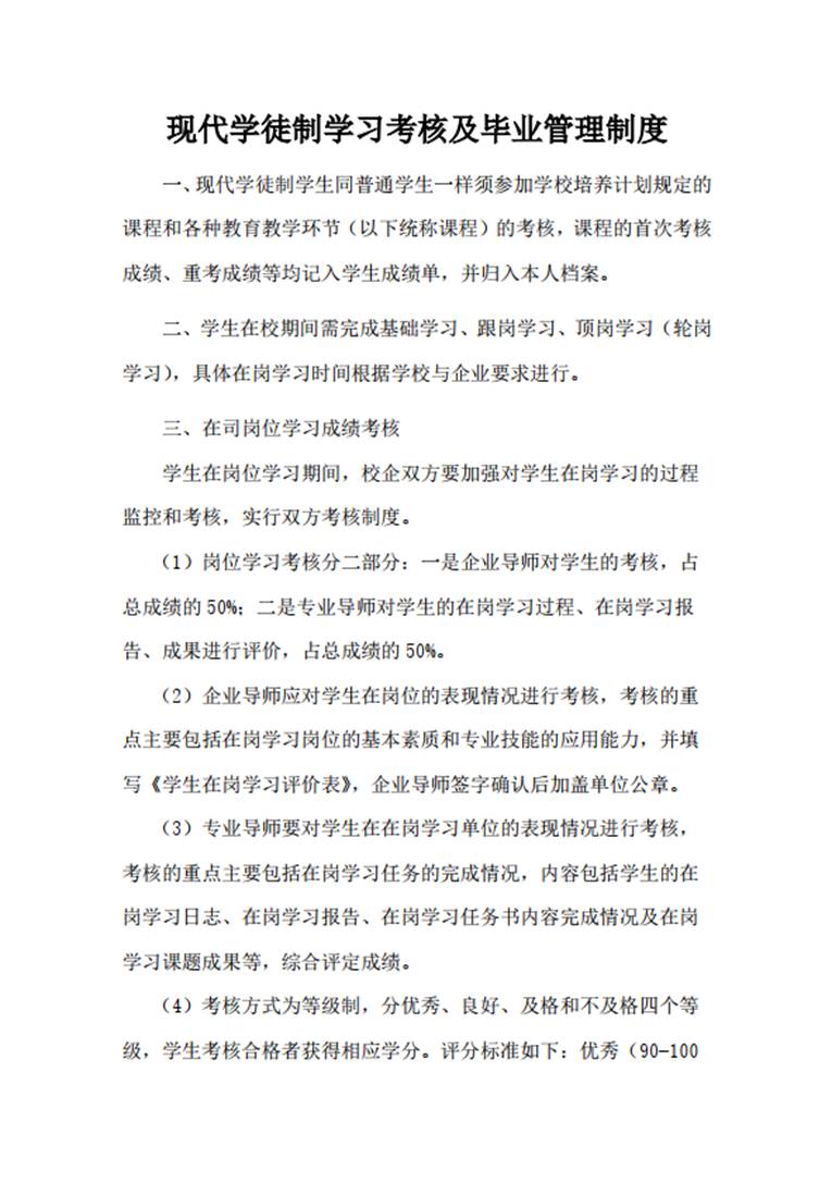 2.1.1 现代学徒制学习考核及毕业管理制度