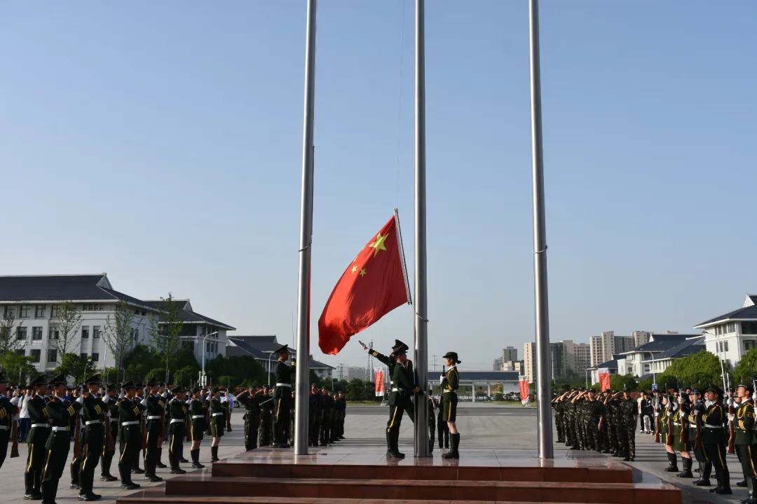 七时整,升旗仪式正式开始。校国旗护卫队队员迈着整齐有力的步伐护送国旗入场,伴随着雄壮的国歌,全体师生庄严肃立,行注目礼,目送五星红旗冉冉升起。